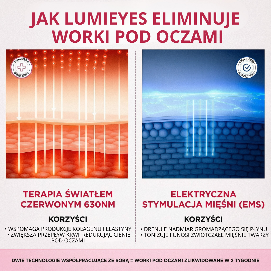 LumiEyes to lekki, wygodny masażer w formie okularów, który pomaga skórze pod oczami wyglądać świeżo i promiennie każdego dnia. Wystarczy, że go założysz, a urządzenie samo zadba o delikatny masaż, poprawę krążenia i odprężenie zmęczonej skóry. To szybki, prosty sposób, by spojrzenie stało się jaśniejsze, młodsze i mniej zmęczone.